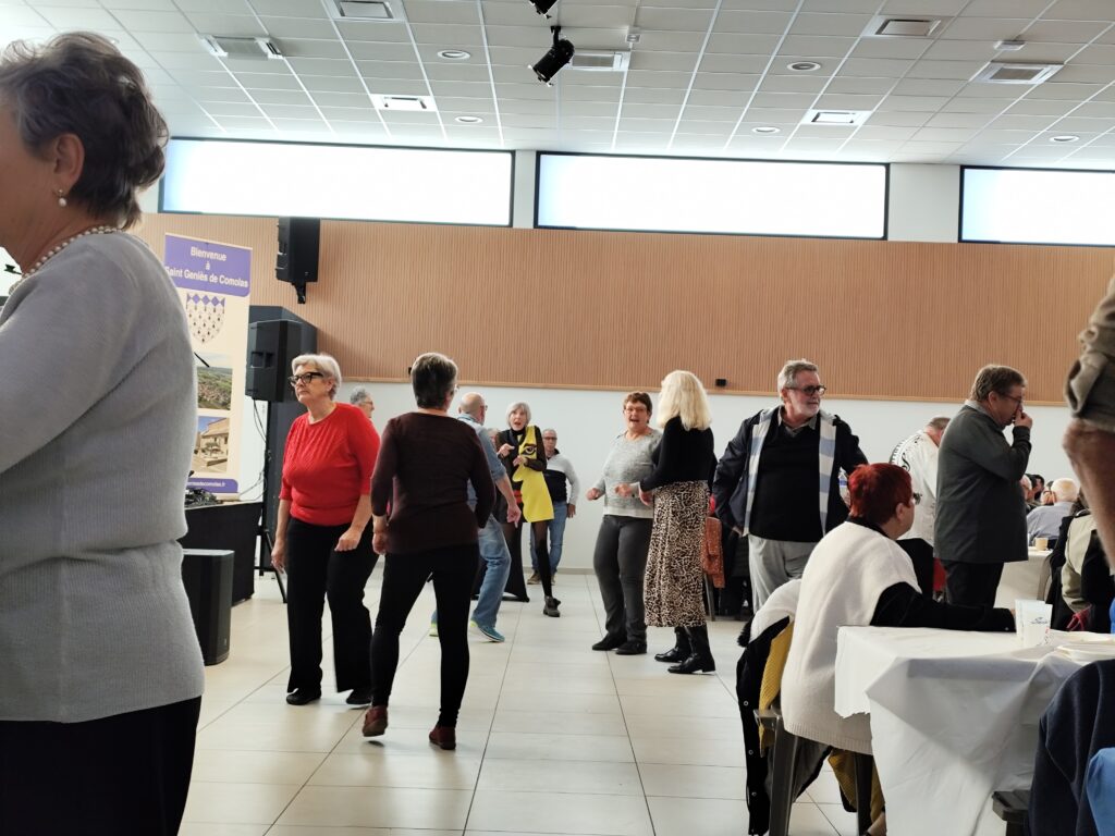 La journée s’est poursuivie avec la traditionnelle choucroute, préparée avec soin par les élus et des bénévoles, à qui un chaleureux remerciement a été adressé. Le repas, servi à 230 convives, a été très convivial et animé par le Groupe Copen, dont la chanteuse Anaïs, professeure de chorale à Saint-Geniès, a su faire danser et chanter les participants. L’ambiance festive et chaleureuse a permis de partager des moments de joie et de convivialité.